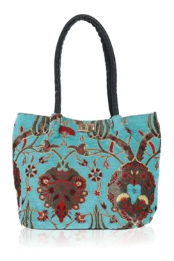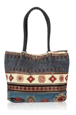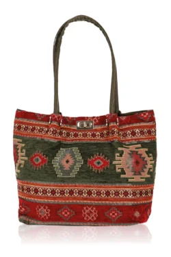 This exquisite handbag features a velvet-like soft texture, crafted from a high-quality blend of cotton and polyester chenille fabric. Designed for both style and functionality, it includes a durable vegan leather shoulder strap for comfortable wear. With a spacious interior and a secure zippered pocket, this bag is perfect for daily use. The traditional kilim fabric design ensures uniqueness, with slight variations in the pattern for each piece. A true blend of art and practicality, this bag is sure to elevate any outfit.